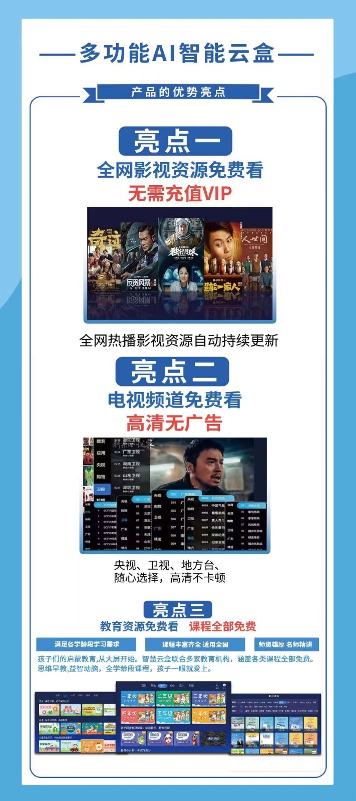 告诉你一个好消息AI智能家庭观影设备➕学习机顶盒,一次安装,终身免费看。 1、全网资源电影电视剧免费看,无需再充值腾讯、爱奇艺VIP。 2、央视、地方台、卫视全免费看无广告。 3、AI智能教育-全学龄阶段免费AI智能课程-北大、清华、北师大、黄冈名师名校课堂、师资资源免费看。 联系电话:(微信同步)