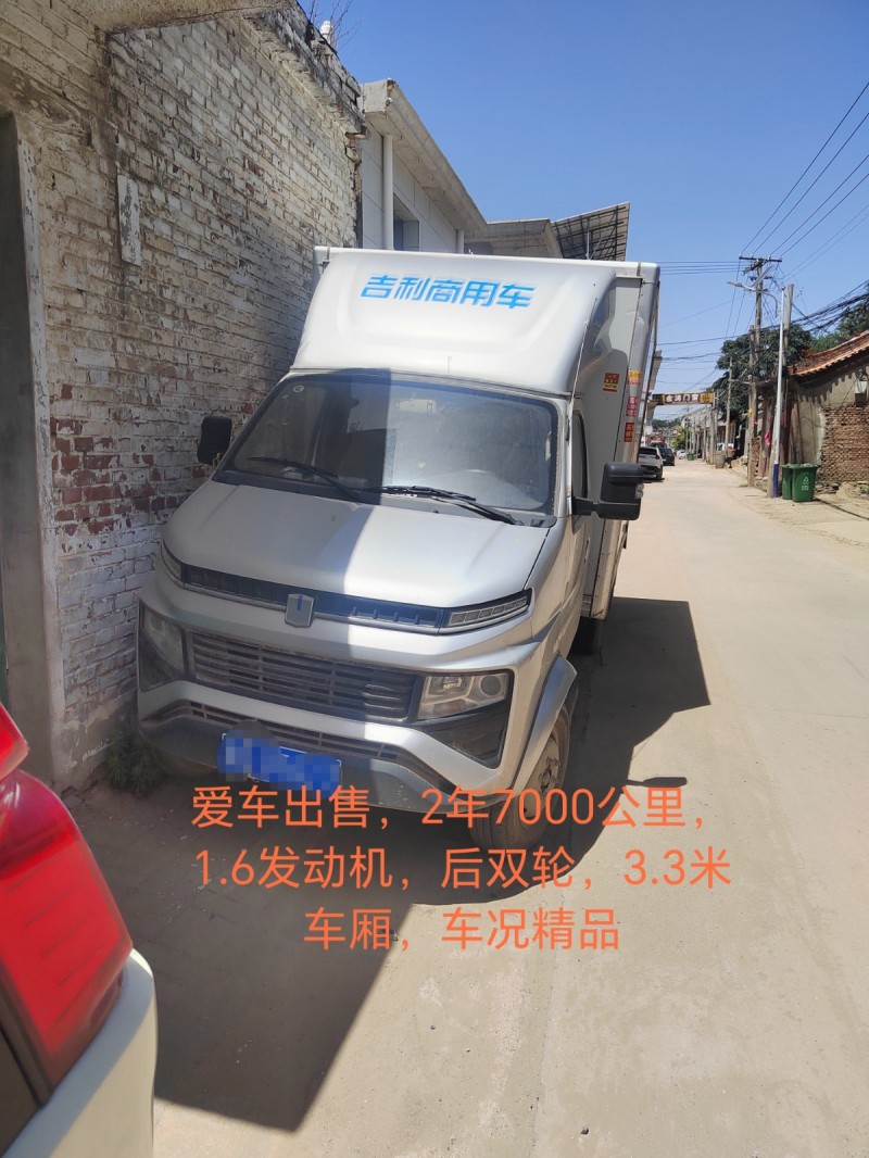 出售22年吉利远程厢货,实表7000公里,1.6汽油发动机,后双轮,3.3车厢,车厢有小刮蹭,没出过力,没跑过长途,备胎没挨过地,车况精品,手续齐全。电话微信同步