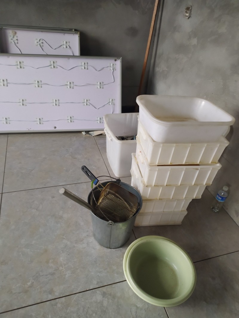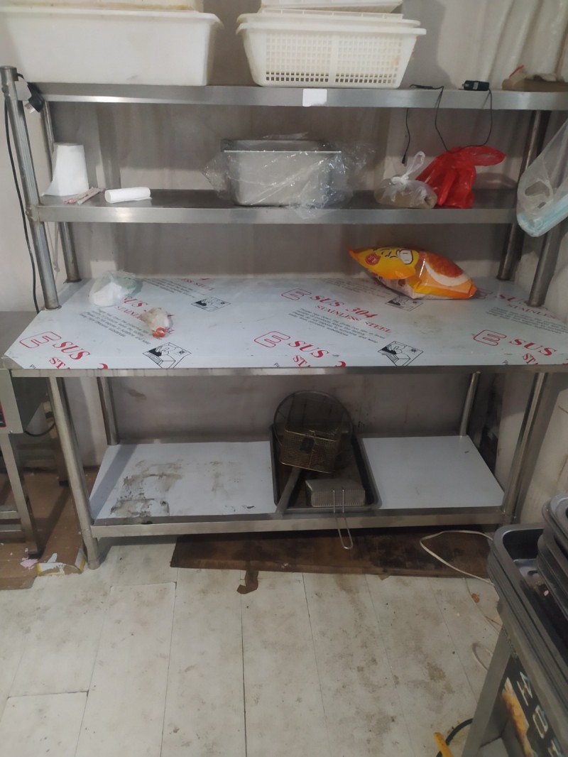 炸鸡门市不干了,处理绣钢面四门冰箱,多功能工作台桌,塑料水桶9.9成新,高亮度加密灯珠灯箱九成新,三锅一体燃气炸锅,简宜桌