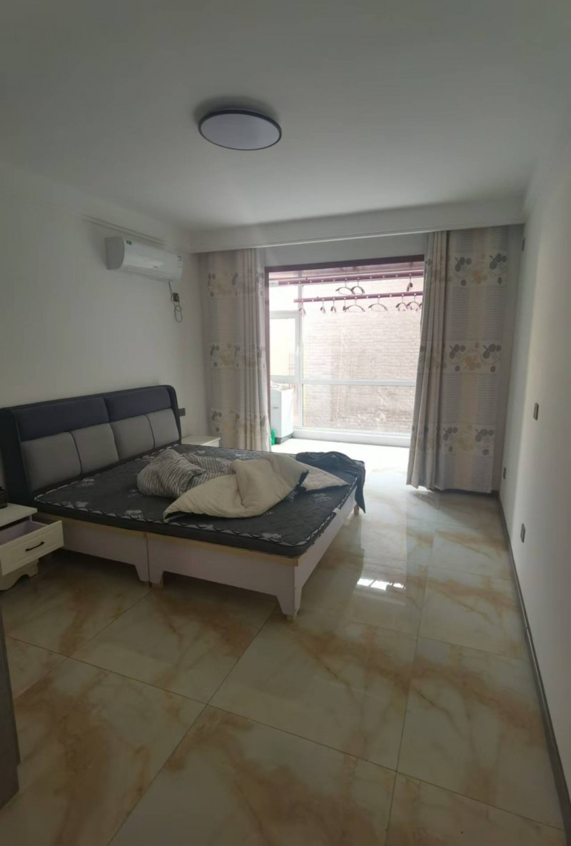 商贸城二层出租,一厅两卧,拎包入住,三个空调、电视、太阳能、天然气、油烟机都有。有意者联系