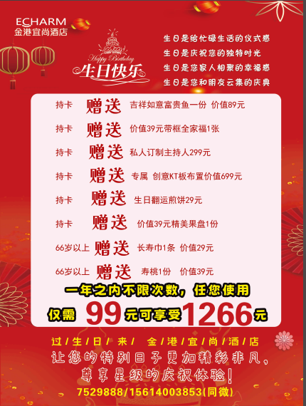 特推出价值666元的39生日卡和价值1266元的99生日卡