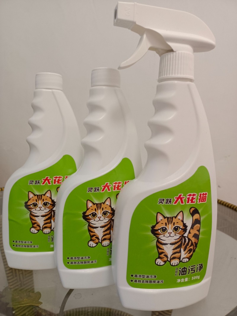灵跃大花猫油污净,它是油污的克星,厨房重油污、抽油烟机的顽固油渍、炉灶上那黑乎乎的污垢,在它面前都无处遁形。只需轻轻一喷,稍等片刻,再用抹布一擦,瞬间洁净如新,为你轻松还原一个清爽整洁的烹饪环境。 我们是一家新建成的工厂,怀揣着打造优质清洁产品的梦想和决心,现在,我们诚邀各市县镇的有识之士成为我们的代理商。这是一次绝佳的商机,就像发现了一座尚未开采的金矿。与我们携手,你将站在清洁行业新潮流的前沿,共享财富盛宴,一同开启辉煌的清洁事业新篇章,为千家万户带去便捷高效的清洁体验!服务热线--