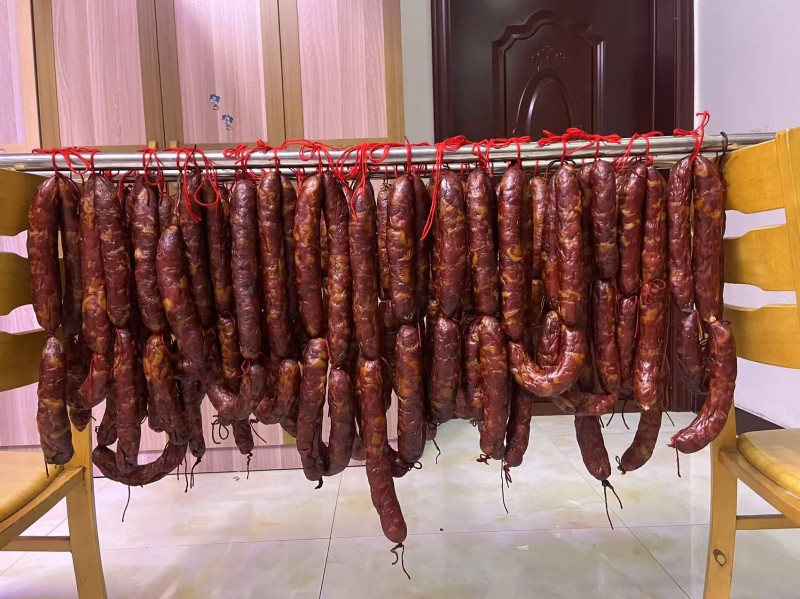 冬将至,年味近,纯手工制作的腊肠(是用松柏枝熏过的)做好的、精选鲜肉,好肉,好料,无任何添加剂,无色素,无香精,无防腐剂、大人小孩安全放心食用,吃着放心!欢迎各位朋友品尝订购