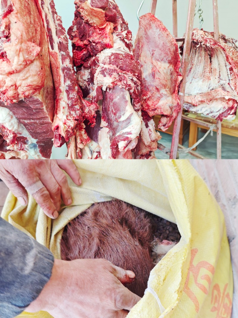 今天现杀的,保证新鲜! 黄公牛牛肉、牛腩 25元一斤 干巴肉 有需要的电话联系