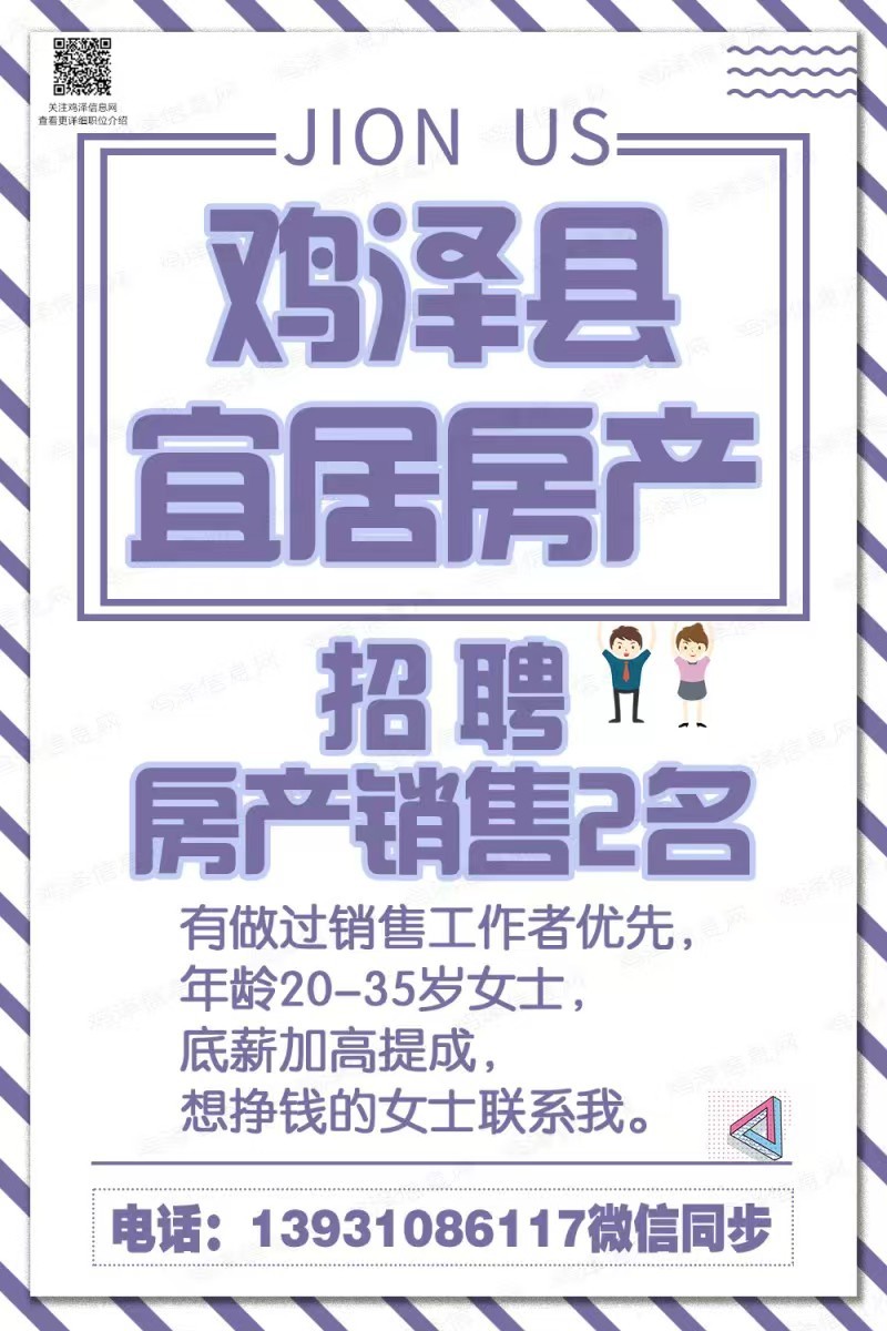 招聘房产销售2名,有无经验均可,带薪培训,月工资3000~1万,电话微信同号