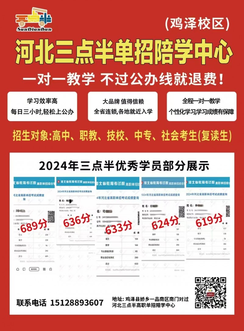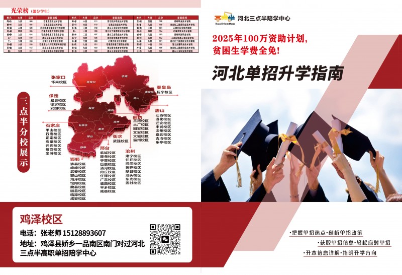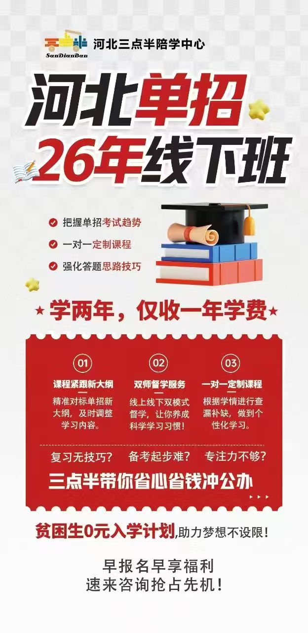 地址: 娇乡一品南区南门对过河北三点半高职单招陪学中心
