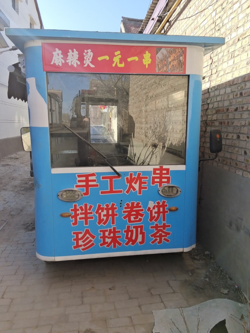 出售电动四轮餐车,长:3米,宽1.6米,内有2米冷藏柜。中间是走廊,两边是平台。