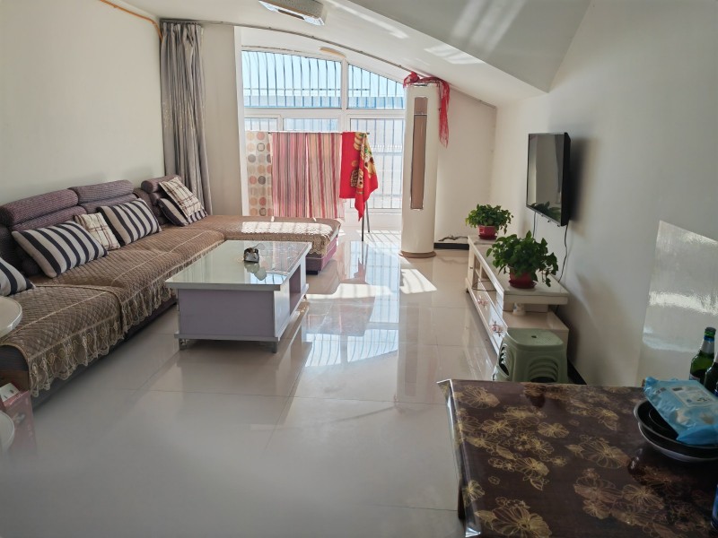 商贸城二层出租,一厅两卧,拎包入住,三个空调、电视、太阳能、天然气、油烟机都有。有意者联系