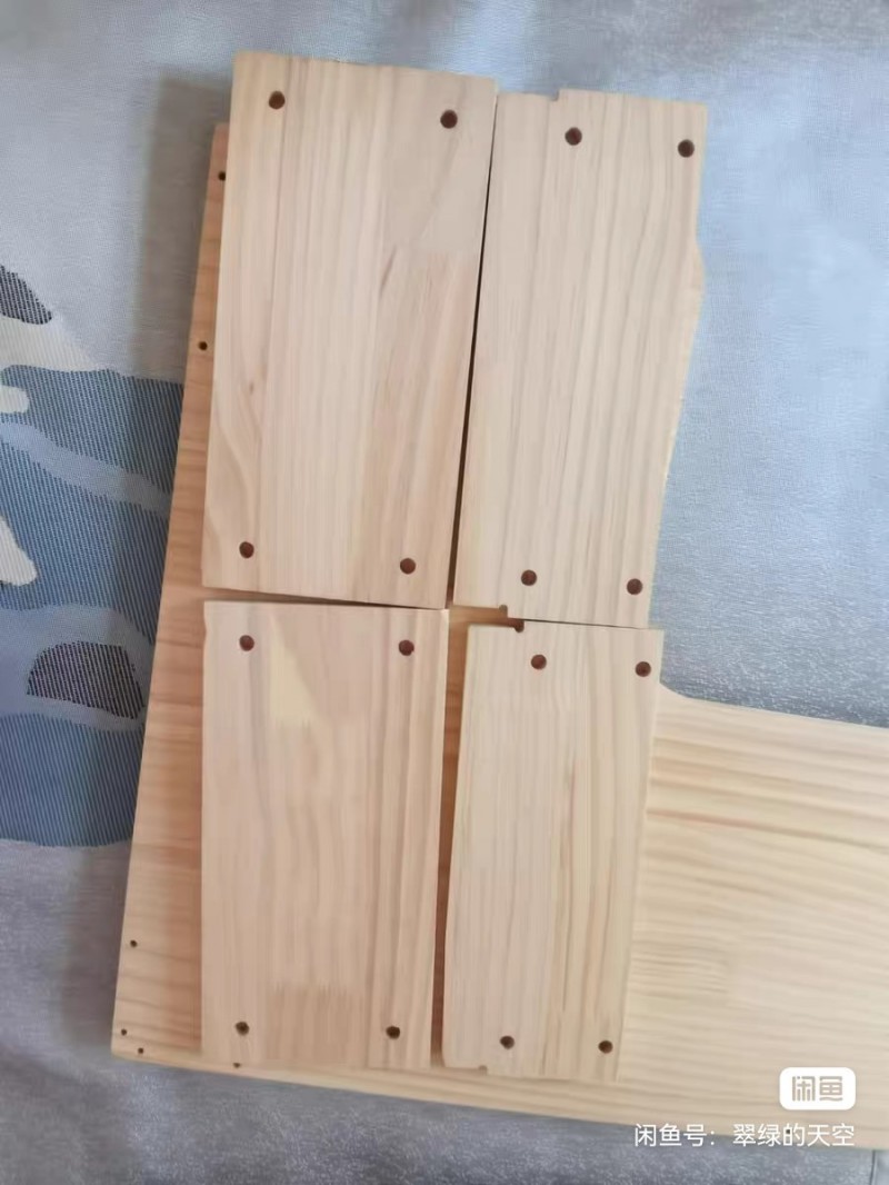 做转角柜剩下两块木板,纯实木,无漆,厚度1.5cm,边长60×60cm,还带4块小木板,有需要的20块钱拿走。