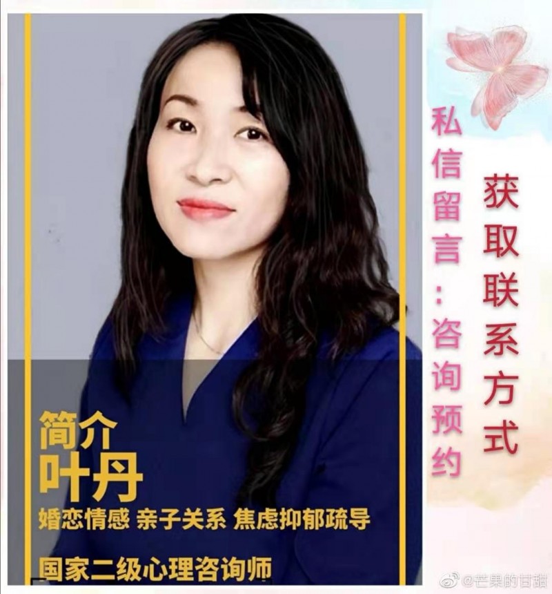 心理咨询服务:儿童青少年厌学、考试焦虑,婚恋情感矛盾,焦虑、抑郁等情绪问题的解决 国家二级心理咨询师国家婚姻家庭咨询师 曾任北京土星集团心理版块首席心理专家,知名情感平台高级情感咨询师; 曾参与中科院心理研究所和超常儿童研究中心开设的儿童团体,是唯一同时参与了两个年龄段班级的心理咨询师,受到组织者、学生和家长的好评; 全国职工心理健康培训专家,中海油特邀心理专家。 咨询预约请加微信:cuihuxianzong 收费:电话咨询300元50分钟,面询500元50分钟(此收费仅限鸡泽乡亲,其他区域正常收费电话咨询600元50分钟,面询1000元50分钟)