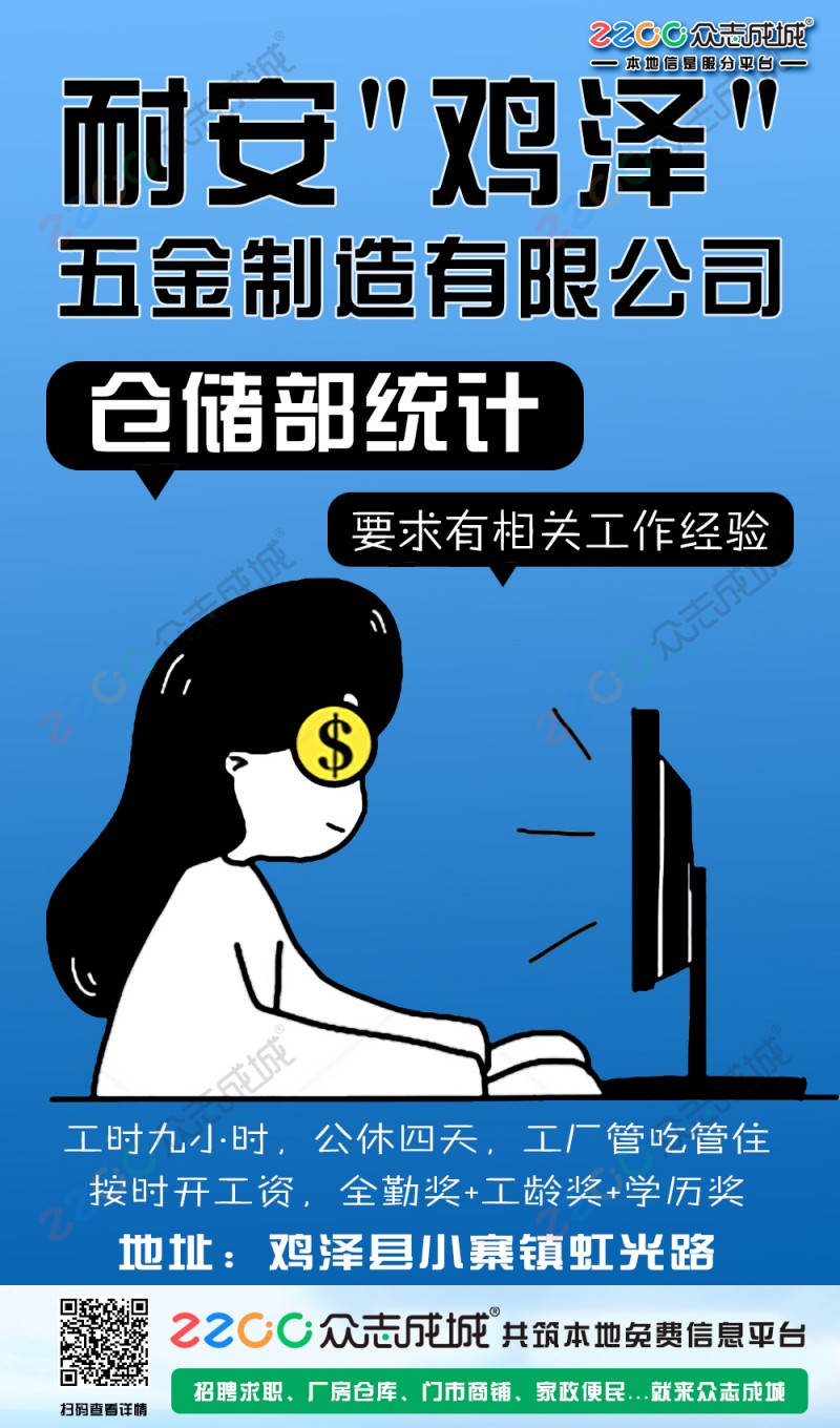 固耐安(鸡泽)五金制造有限公司招聘:仓储部招聘男库管一名、主要负责发货,对清单,要求有相关工作经验,工时九小时,公休四天