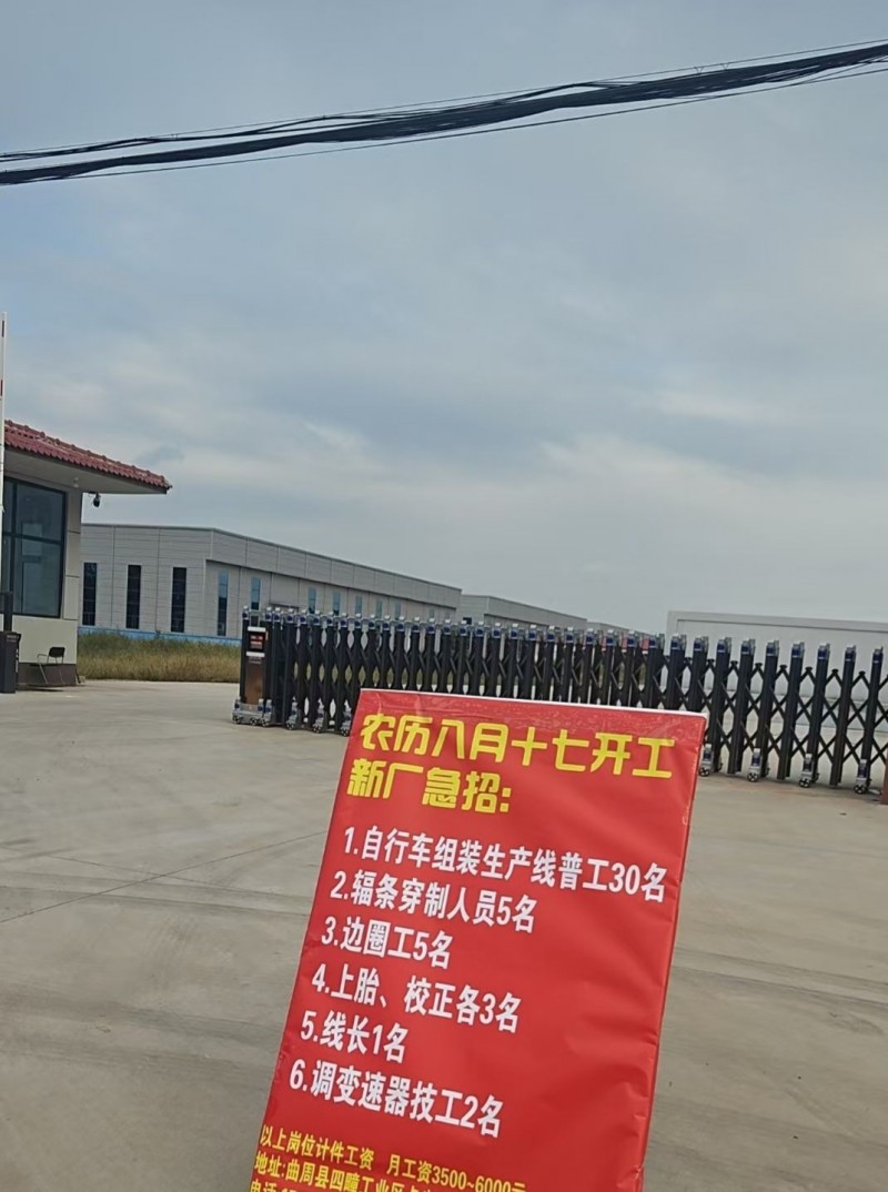 曲周县四疃镇卡米拉招聘:自行车组装工15名,年龄18-50,组装各种型号自行车配件,计件工资;待遇:公司提供食宿,节日福利,工资月结。