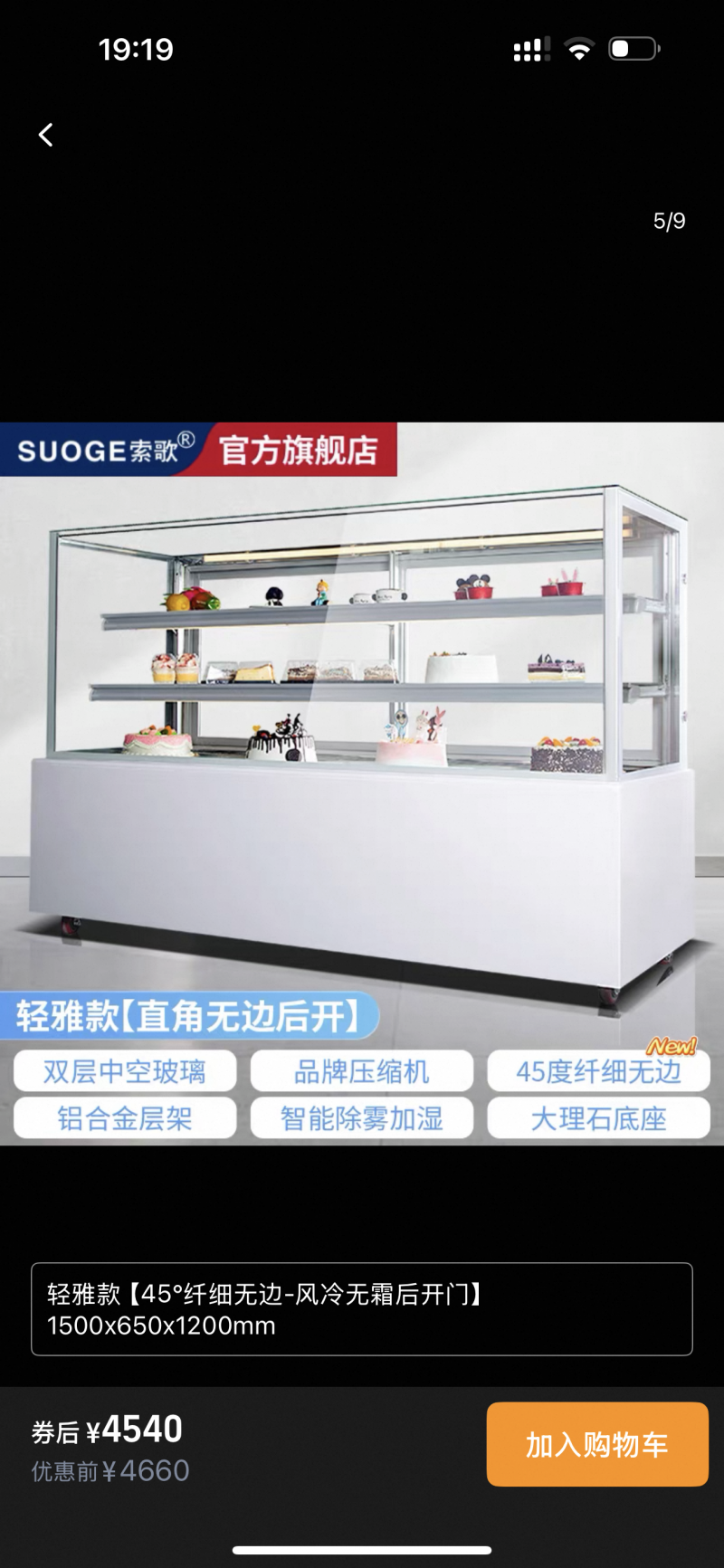 因门店转让,出售一个接近全新的西点冷藏展示柜,甜品慕斯卤味凉菜皆可使用,全景钢化玻璃,风冷循环制冷,有意联系,