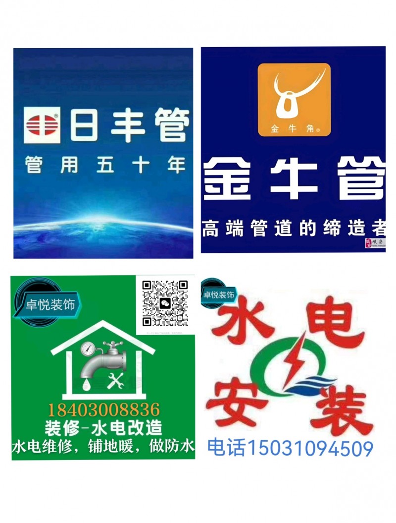 (1)专业改水改电,铺地暖,做防水 (2)维修水电,地暖分水器,阀门,水龙头 (3)安装开关,插座,灯具,浴霸,网购五金挂件等 (4)装修,旧房改造,吊顶,刮腻子上漆,装护墙板,做隔断墙 (5)拆墙改门窗,清运大小零活 服务电话 微信同步