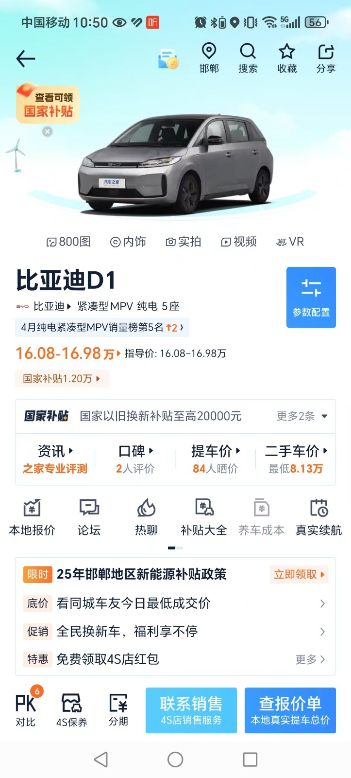 比亚迪D1.网约版,三电质保六年六十万公里,新车未上牌,指导价160800.续航418公里,可以领国补2万,省补置换补贴都可以,超低价格7.✕✕万,国补领完5.✕万,省补领完6.✕万[庆祝][庆祝][庆祝]现车现车电话同微信