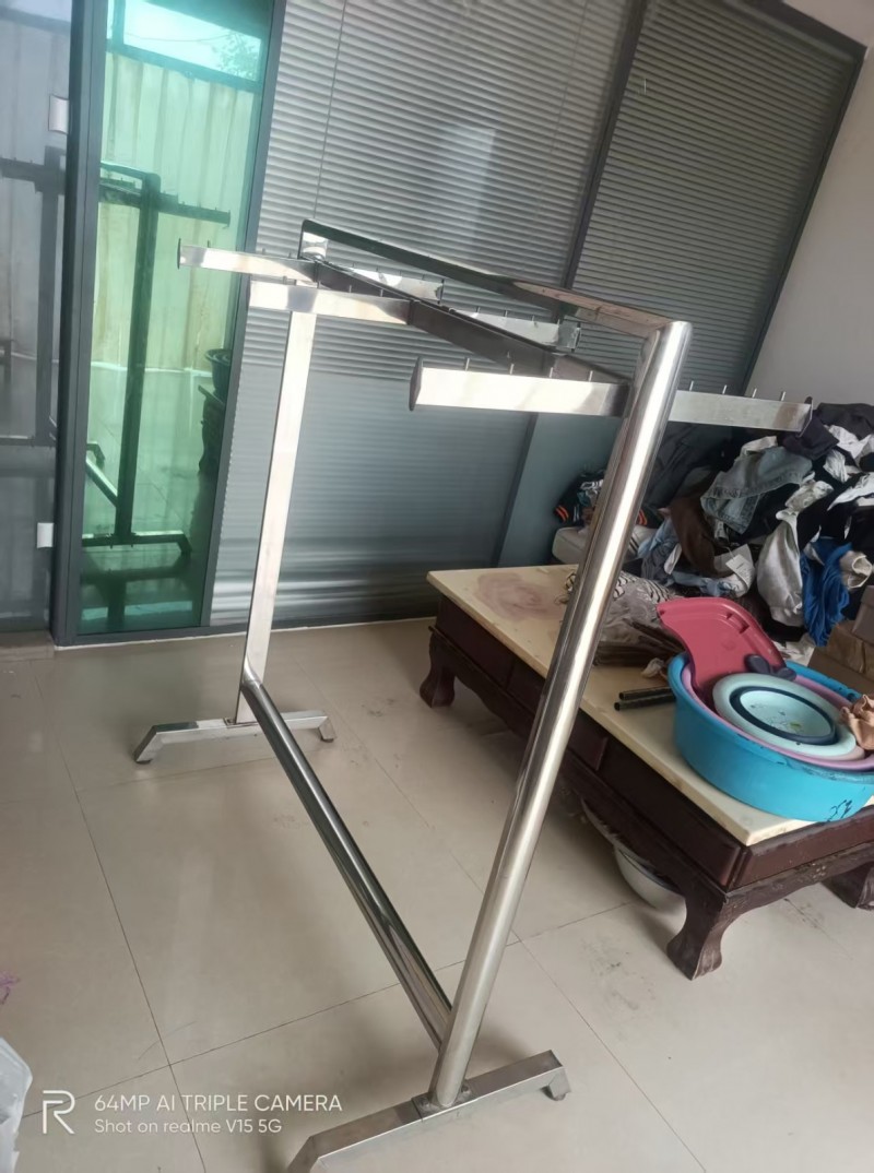 服装门市不干了,不锈钢落地架,俺买时290买的,现在处理,9成新100元,带6个不锈钢探子,图片的全部处理,需要的看看联系,数量不多了