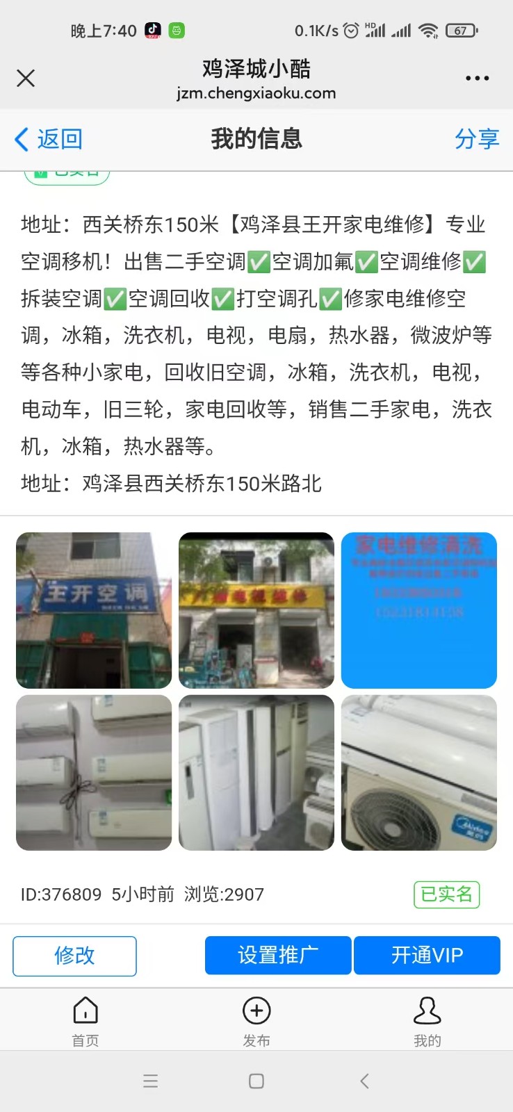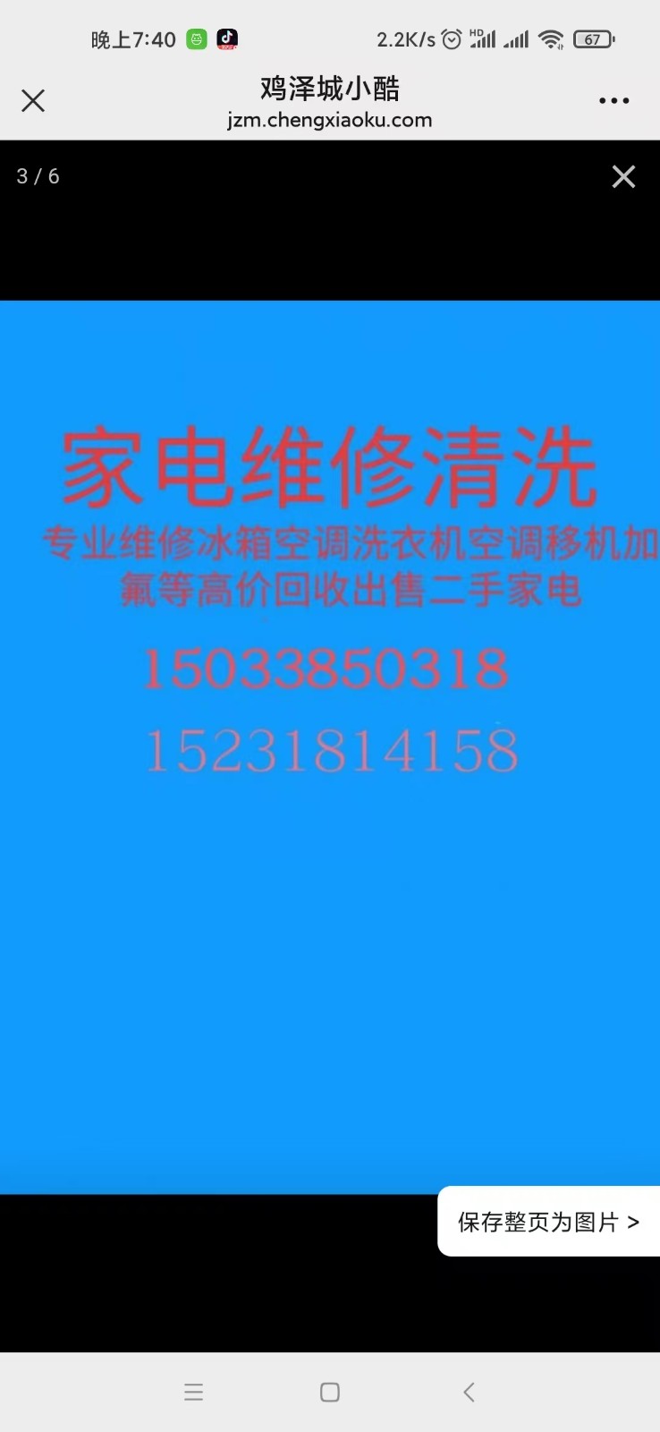 地址:西关桥东150米【鸡泽县王开家电维修】专业空调移机!出售二手空调✅空调加氟✅空调维修✅拆装空调✅空调回收✅打空调孔✅修家电维修空调,冰箱,洗衣机,电视,电扇,热水器,微波炉等等各种小家电,回收旧空调,冰箱,洗衣机,电视,电动车,旧三轮,家电回收等,销售二手家电,洗衣机,冰箱,热水器等。 地址:鸡泽县西关桥东150米路北 电话不是本机看图片