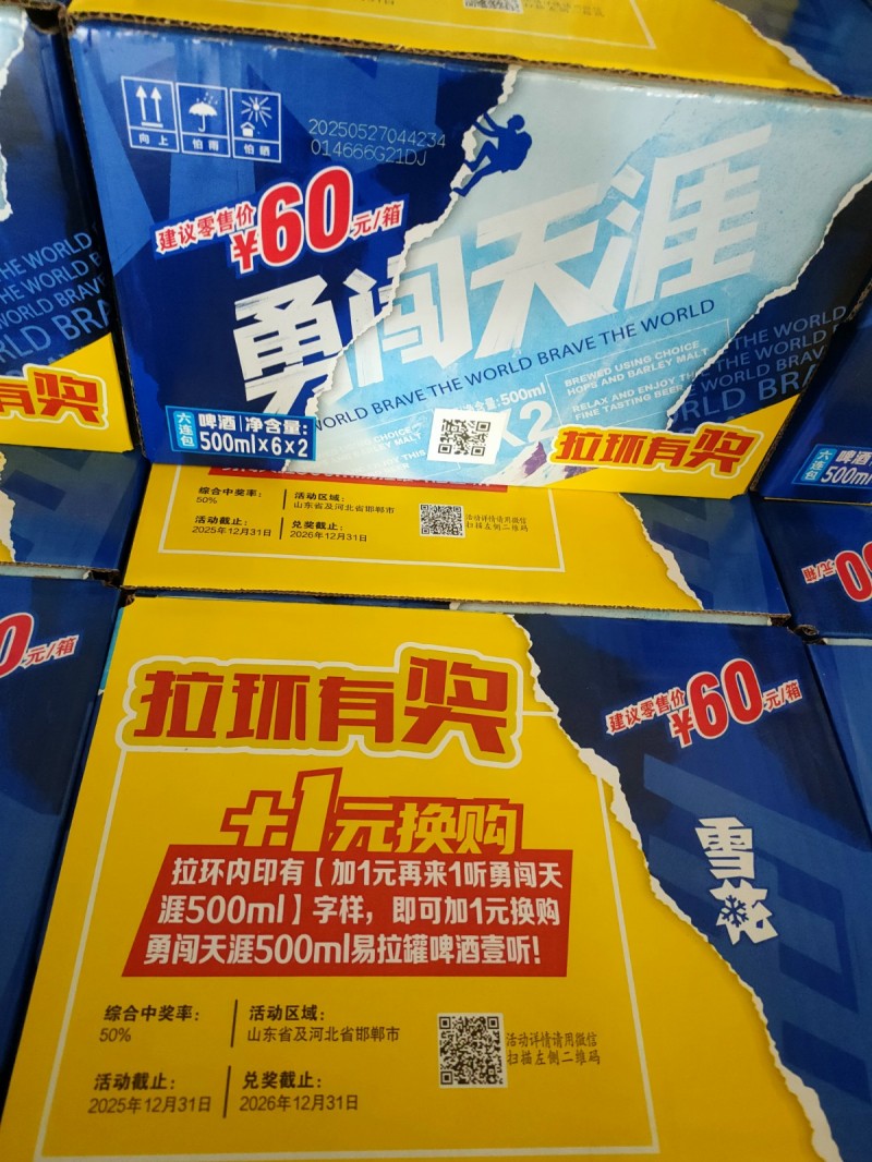 请认准兑奖产品勇闯天涯听装啤酒,兑奖兑不停,你喝了?