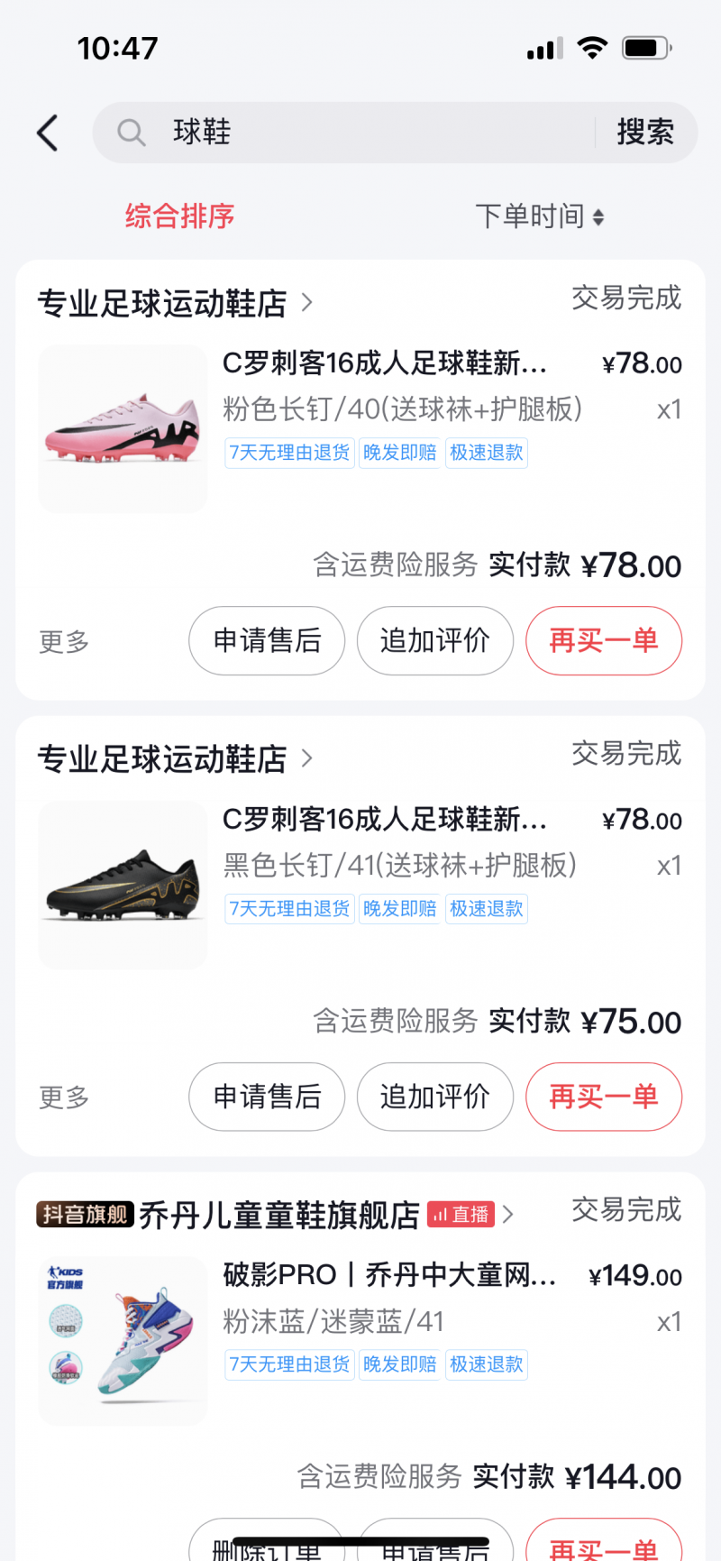 买的两双球鞋,因孩子不喜欢足球了。一次也没穿过。有需要的可以入手。