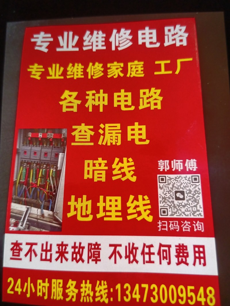 专业维修家庭.工厂各种电路,查暗线.漏电地埋线!查不出来故障不收任何费用。24小时服务热线
