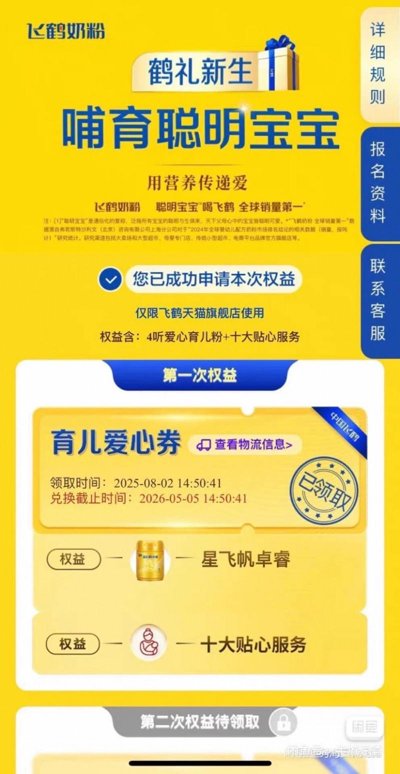 飞鹤卓睿一段200,配合扫码,仅限自提