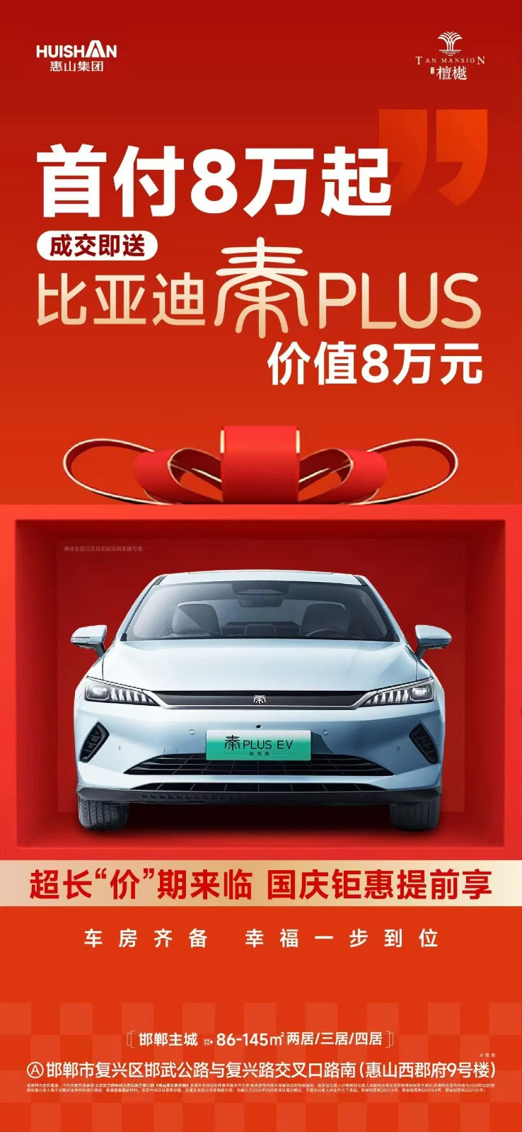 邯郸市红星檀樾现房单价7000多国庆期间首付3万起送一个比亚迪汽车秦面积8699104120平