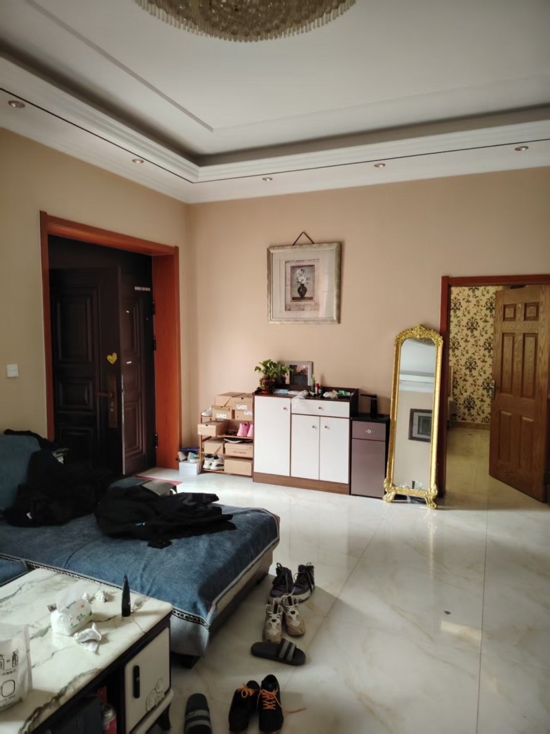 商贸城二层出租,一厅两卧,拎包入住,三个空调、电视、太阳能、天然气、油烟机都有。有意者联系