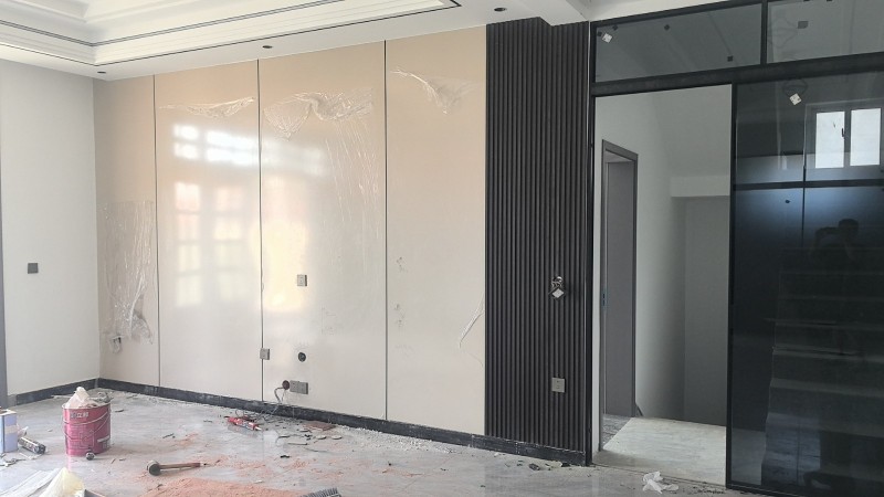 木饰面墙板工厂,专业安装背景墙,木饰面格栅条胶,一站式配全。