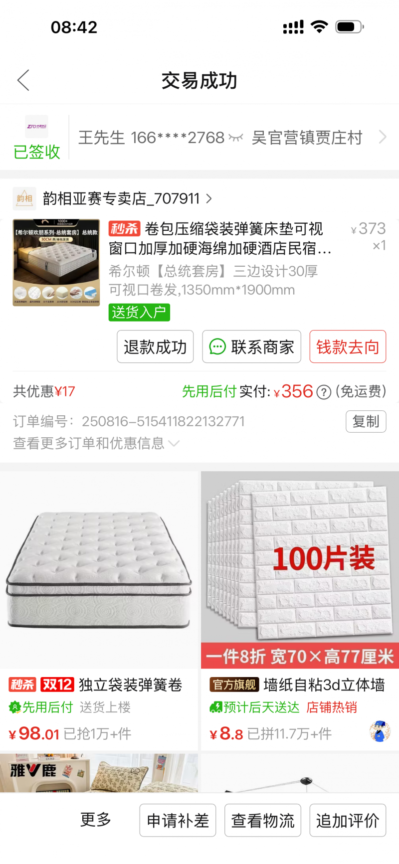 出售床垫长1.9米宽1.35米,厚30厘米,由于太厚不合适,现半价出售。吴官营自提
