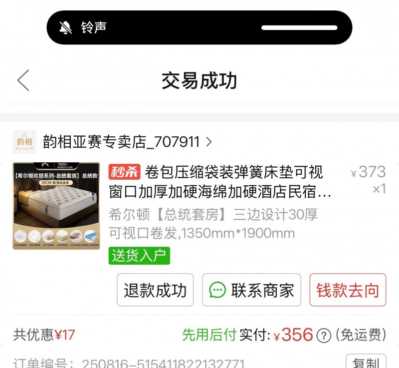 新买的床垫长1.9米宽1.35米厚30厘米。由于太厚不适合,现半价处理,吴官营自提。