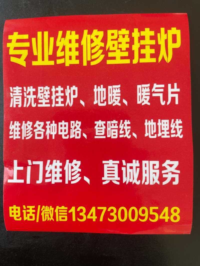 专业维修家庭工厂各种电路,查漏电、暗线地埋线!专业维修壁挂炉,清洗壁挂炉、地暖、暖气片!24小时服务热线