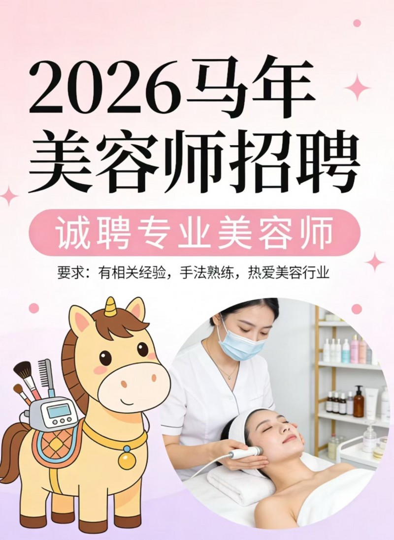 马年“薪”诚职等你来现招聘美容师2名带薪学习新技术,福利齐全、晋升透明只要你手艺好、有责任心、热爱美业欢迎加入我们,一起变美赚钱~
