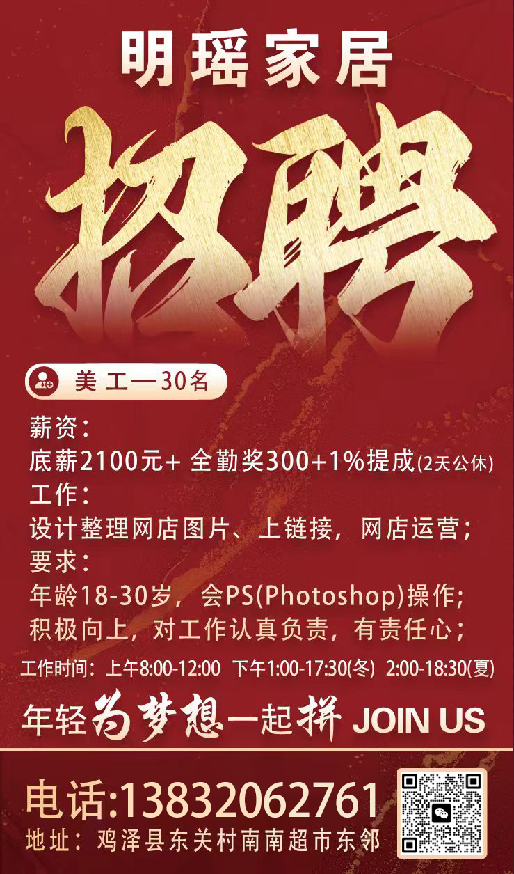 要求:年龄18-30岁,会PS(Photoshop)操作,积极向上,对工作认真负责,有责任心。