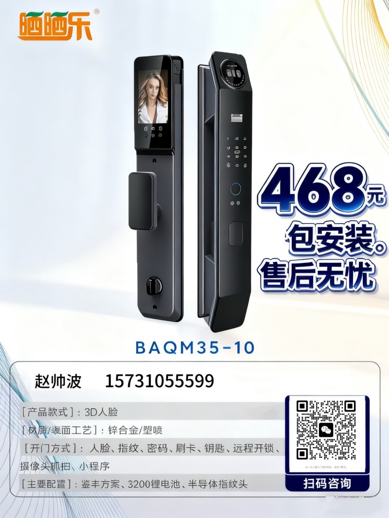 1.一锁守护,一键安心 2.告别钥匙,智享安全 3.密码守护,出入无忧 4.智能锁家门,安心进万家 5.精准解锁,硬核防护