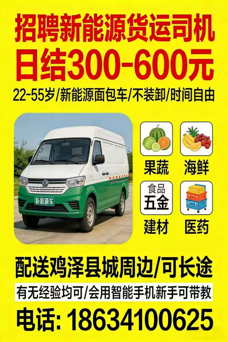 平台大量货物,运力不足急需大量司机加入配送,日结工资不拖欠,眼高手低的选手就不要耽误你我时间了,来几个安稳的司机师傅加入