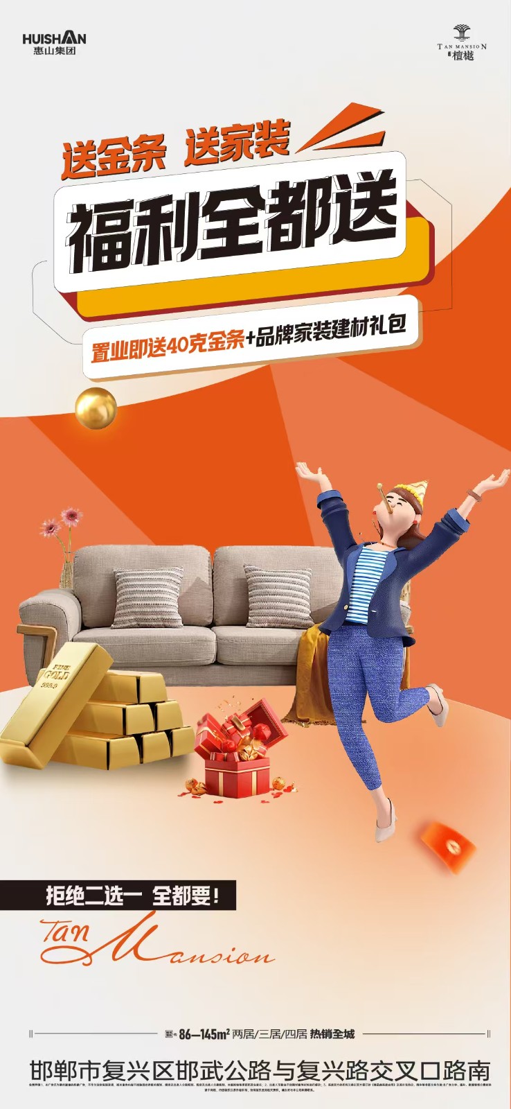 邯郸新房现房出售,单价7000起,首付3万就能买房,买房送40克金条,➕1万送家装