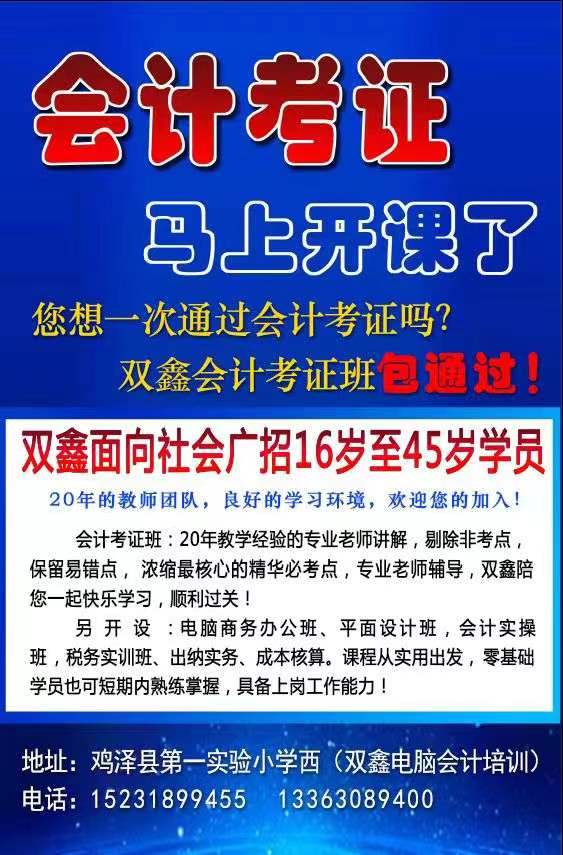 地址:鸡泽县第一实验小学西 (双鑫电脑会计培训)